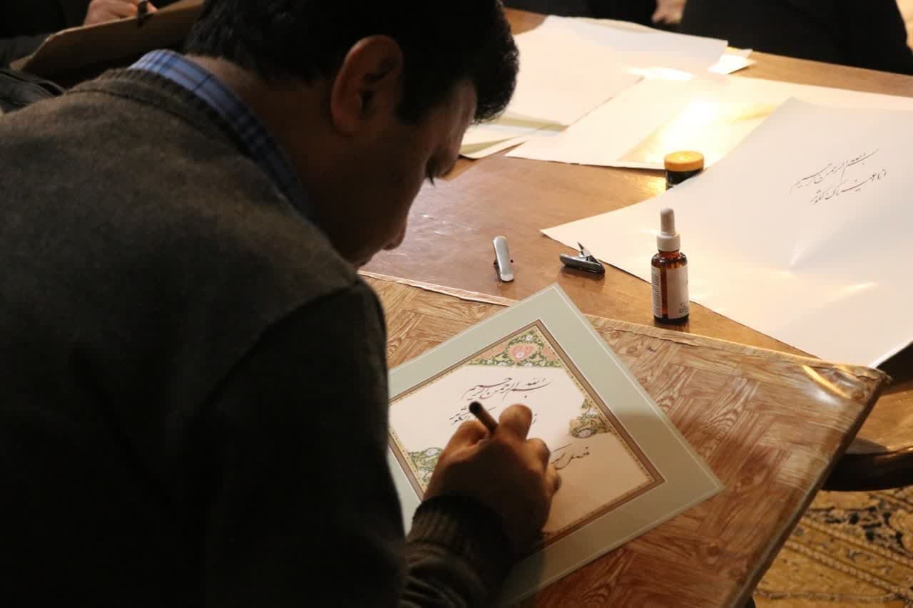 همچنین هنرمندان خوشنویس آثارقرآنی نوشته شده درجلسه رابه مهمان ویژه وتعدادی ازحاضران درجلسه اهدانمودند.