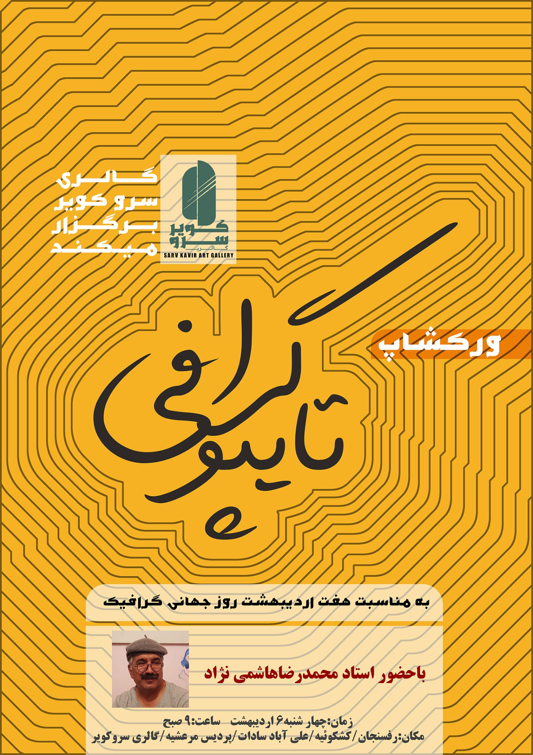 به همت اولین گالری روستایی استان کرمان به مناسبت 7 اردیبهشت روزجهانی گرافیک ورکشاپ یک روزه تایپو گرافی در گالری سرو کویر برگزار شد